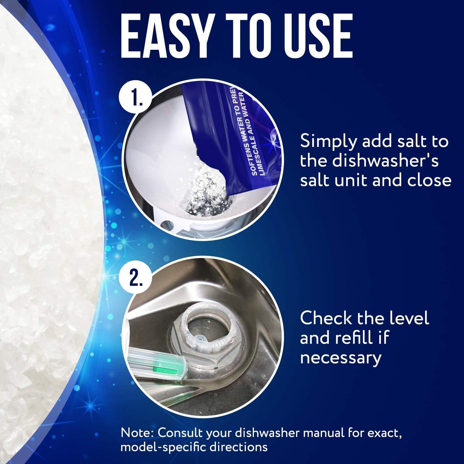 Effortless Usage: Simply add the salt to your dishwasher's designated water softener salt unit and monitor levels for refills. This straightforward process offers convenience, especially during busy holiday seasons when entertaining requires efficiency
