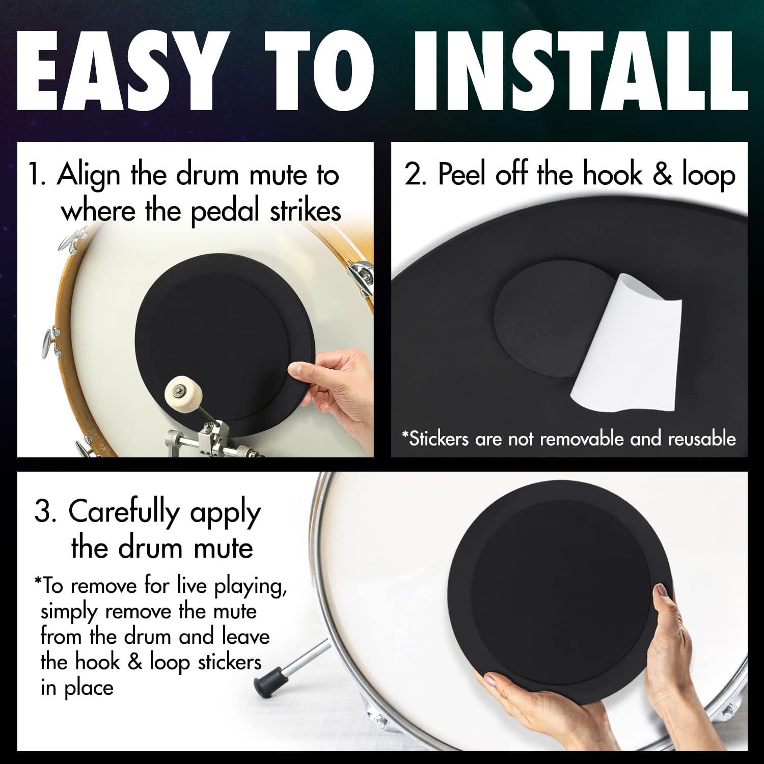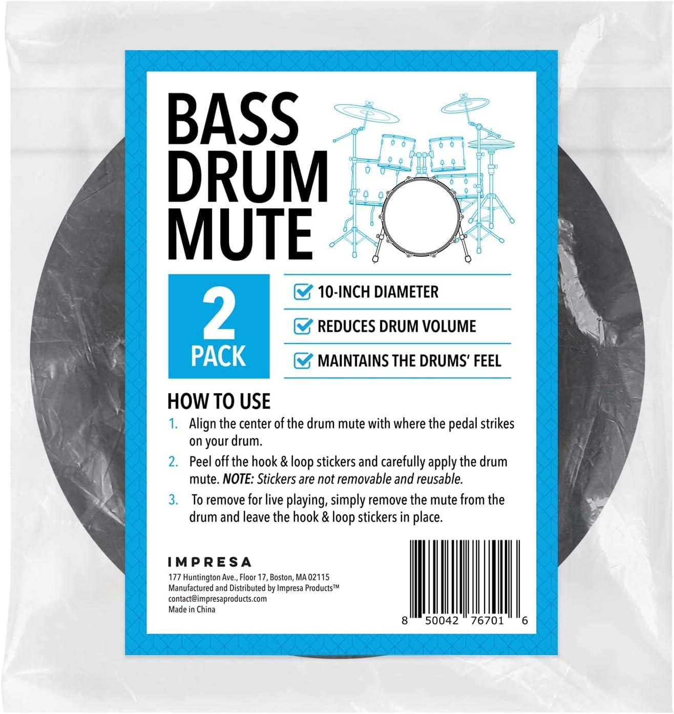 The IMPRESA Kick Drum Mute Pads are a vital accessory for drummers seeking to hone their skills in quieter settings. These bass drum mute pads are designed to cater to both amateur and professional drummers who wish to practice without disturbing others. With the arrival of cooler months, indoor practice becomes more frequent, making these drum silencers an essential tool. These kick drum mute pads are adept at reducing noise while preserving the authentic feel and natural bounce of a traditional drum head. Whether you are practicing late at night or in shared living spaces, these drum dampening pads ensure your practice sessions remain unobtrusive yet effective. The pads are easily installed using peel-and-stick hook-and-loop fasteners, allowing for effortless attachment and removal. Simply align the center of the pad with the pedal strike area on your bass drum, peel off the adhesive backing, and attach securely. When transitioning to performance mode, the pads can be removed with ease while leaving the fastener in place for swift reattachment. Including two durable pads, this set offers a practical solution for equipping multiple drums or practicing alongside a friend. The pads can be used on various percussion instruments, such as snare drums and toms, offering versatile sound control without compromising on quality. These drum mute pads are built to withstand regular use, ensuring longevity and reliable performance. Ideal for drummers who value uninterrupted practice, these bass drum dampeners are a valuable addition to any drum set, helping users to practice effectively without sacrificing the quality of sound and feel.