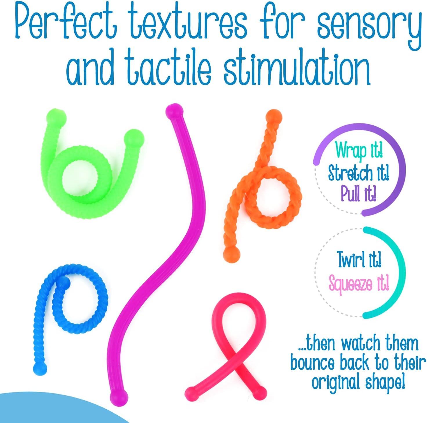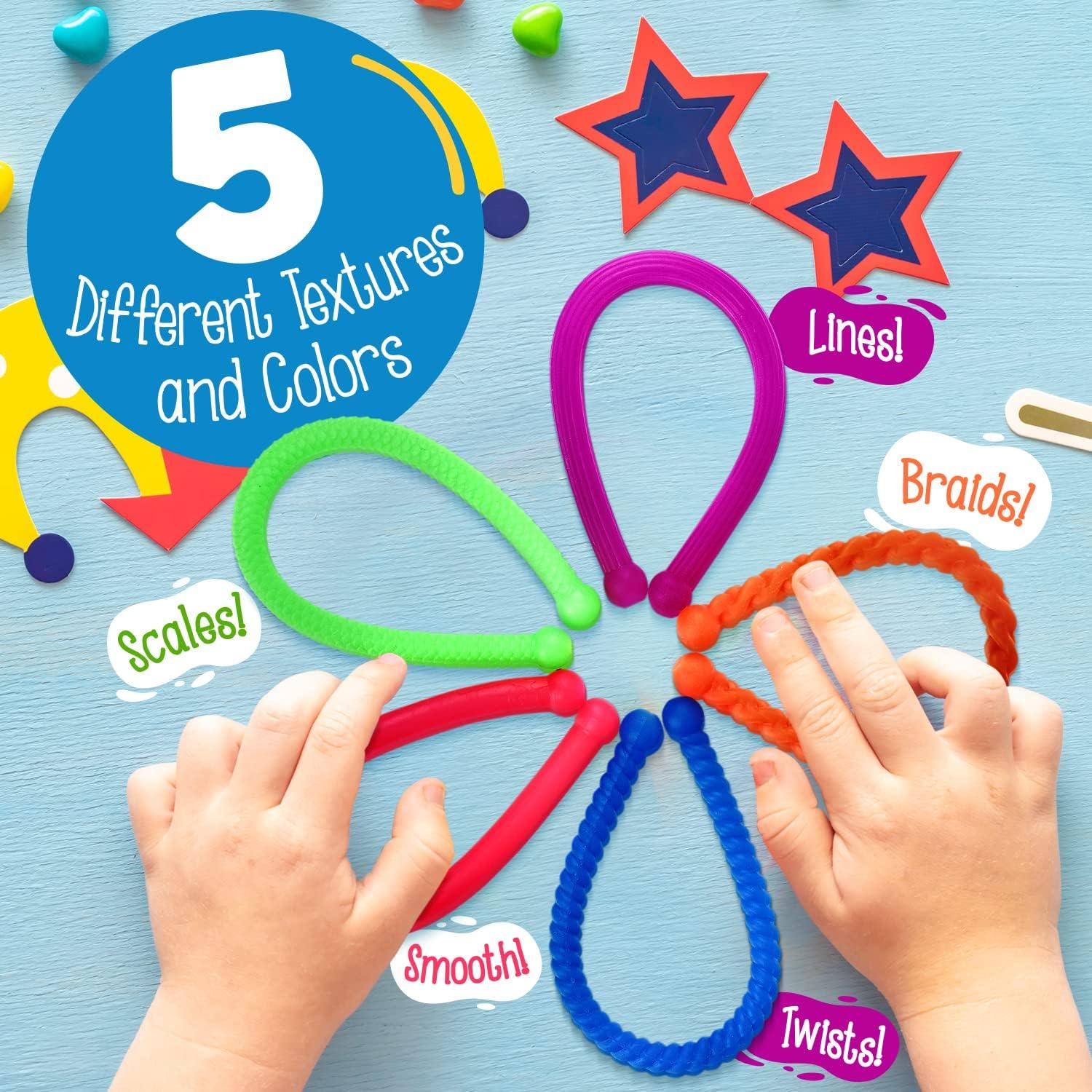 IMPRESA Stretchy Fidget Toy - Holiday Stocking Stuffer Toys for Kids - Sensory Noodles & Fidget Noodles Office & Classroom - 12 in Long - Stretches to 8 ft, Multicolor, 5-Pack(Textured)