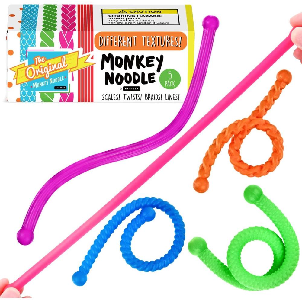 IMPRESA The Original Monkey Noodle Fidget Toy – 5 Pack – Stretchy Sensory Toys for Kids & Toddlers with Unique Needs – Fosters Creativity, Focus, & Fun-Great for Classrooms, Home & Playtime Ages 3+(Original)