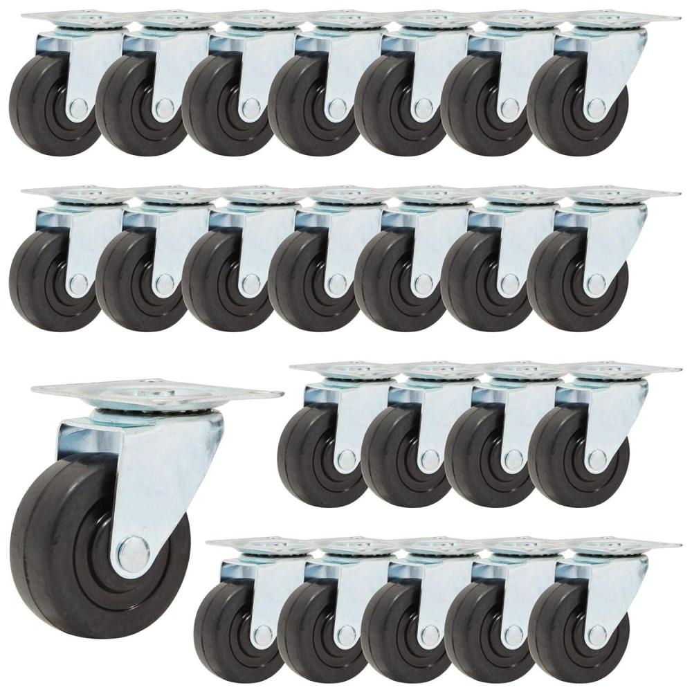 Enhance mobility and organization with the Stockroom Plus 24 Pack 2-inch Swivel Caster Wheels. Designed for versatile use, these sturdy rubber wheels feature a top plate and bearing, making them ideal for a variety of applications. As the cooler weather approaches, maintaining functionality in indoor spaces becomes essential. These casters are perfect for upgrading office seating or facilitating smooth movement on plant stands, enhancing your home or office environment. These caster wheels are well-suited for professionals and homeowners alike, providing quiet mobility and floor protection. They are compatible with a wide range of surfaces including hardwood, laminate, tile, slate, and concrete. Whether you are moving heavy equipment or rearranging furniture, these wheels ensure efficiency and durability. Each caster wheel is crafted from robust iron and rubber materials, capable of supporting up to 66 pounds individually. The 360-degree swivel capacity allows for effortless maneuverability, making these wheels an excellent choice for office chairs, bookshelves, or storage units. The included top plate and four screws ensure easy attachment, simplifying the replacement of existing wheels or upgrading to a new set. Incorporating these caster wheels into your space is straightforward and effective. This bulk set of 24 provides ample supply for multiple applications, ensuring you have the necessary resources for both professional and personal use. Whether you are organizing a workspace or enhancing the mobility of household items, these caster wheels offer a reliable solution. Optimize your environment with these versatile black swivel caster wheels. Their durable construction and sleek design make them an indispensable tool for enhancing mobility and organization across various settings, providing a seamless blend of function and style.